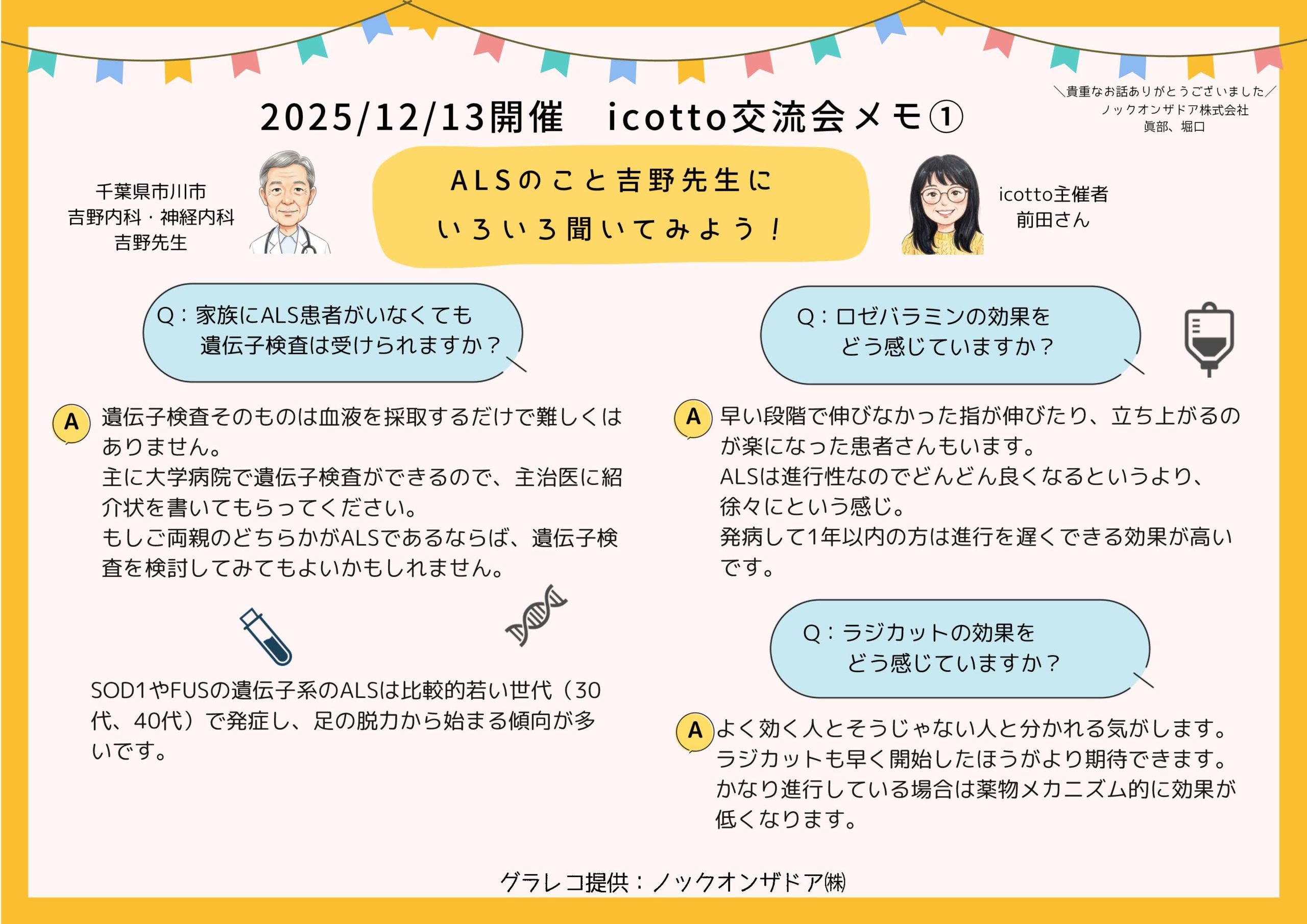 難病患者の交流会「icottoイコット」に遊びにきませんか?難病患者のコミュニケーションをサポートし、難病の啓発と生活の質の向上を目指した活動を行なっている民間の団体「icotto」をご紹介します。現在、指定難病に入る疾患は340以上もあります。治療法がなく、体調維持が最善という状況の中、難病の患者さんは、病気の進行や不自由な環境と闘いながら日々を送っています。 病気になると、外出するのが困難になる方が多くいます。コロナ禍により、介護する家族も同様で、他人とのコミュニケーションをとる機会が減って孤独を感じる人も少なくありません。icottoでは、疾患に関係なく、患者や家族、さらに医療、介護、セラピストなど患者をサポートする側の人も参加できる交流会を開き、情報交換を行っています。 icotto主催:前田理恵/丸山明子 「icottoの名前は「気軽にいこっと」というイメージでつけました。誰もが気軽に参加して質問をしたり、また自分の体験を話したり。悩みや困り事、介護生活の工夫、コミュニケーションのとり方など、たわいもないおしゃべりに花を咲かせてもらいたいという思いが込められています。 闘病を続けていると、一人だと考えすぎてしまい、絶望と孤独しか見えなくなってしまうことがあります。人とコミュニケーションをとることで、気持ちが明るくなるし、元気になれる。新しい出会いや繋がりができるなど、喜びや楽しみも生まれます。さらに、実体験をもとにしたリアルな情報は介護を受ける人、支援する人にとって役に立つことも多くあります。 icottoは現在、介護の現場=療養生活がより快適になるよう、当事者だけでなく介護に関わるヘルパーさんや看護師、リハビリの方にもご参加いただいて、患者と共に情報交換しながらのおしゃべりを楽しんでいます。 介護は当事者と介護者の双方で成り立つものです。icottoがお互いの理解を深めてもらえる場となり、参加してくれた方にとって憩いの場になることができれば幸いです。 ちょっと覗いてみようかな。そんな気持ちでicottoに立ち寄ってみてください。」 ■icotto登録・参加について icottoの公式LINEに登録すると、交流会やグループチャットに参加することができます。現在、全国各地、260名を超す登録者があり、大所帯となったicotto。登録されている人は患者だけでなく、ご家族や患者さんをサポートする方、ヘルパーさん、看護やリハビリ職の方など、さまざまです。 不定期ですが、オンラインにて1カ月半に1回ほどの間隔で、その都度テーマを設定し、交流会を開いています。 医師やリハビリなど専門家によるセミナーや音楽会なども実施しています。交流会の開催やその他の情報はfacebookにて発信しています。 ★Facebook ★icottohttps://www.facebook.com/icotto2023/★Uniquehttps://www.facebook.com/uniquewww 団体名 icotto(イコット) 登録者数 267名※2025年現在 登録料 無料 登録方法 公式LINEにご登録くださいhttps://lin.ee/55pcWLy1l 登録対象者 難病患者(確定診断のみ)、難病患者ご家族、介護、医療、 福祉に携わる方、難病支援(ボランティア)に関心のある方。 対象地域 全国 主な活動 ・交流会開催※主にオンラインでの開催・LINEによるオープンチャット常設・難病・介護・リハビリに関する情報提供※icottoは個人的なお付き合いを目的とした集まりではありません。個人情報を公にしたり、特定の方へのアプローチはご遠慮ください。 主催者 前田理恵・丸山明子 当い合わせ icottocafe@gmail.com